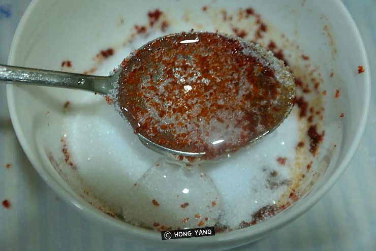 간장2큰술 + 고춧가루3큰술 + 설탕 3-4큰술 + 올리고당 1큰술